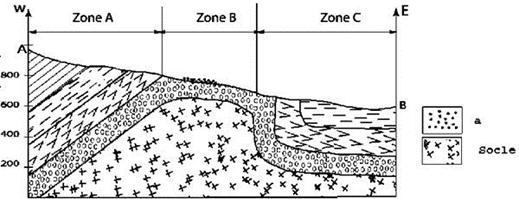 4°) – Comment se présentent les limites des couches et les courbes de niveau au niveau de chaque zone ?