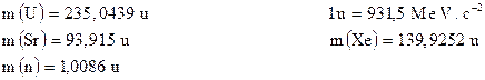 2) Lorsqu’un neutron frappe un noyau d’uranium 235, il des produit une réaction de fission. L’équation de cette réaction s’écrit :
