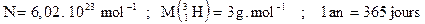 3) On considère la réaction nucléaire et identifier le noyau X. Calculer l’activité radioactive de l’élément tritium