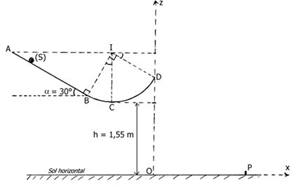 Un solide (S) de masse m = 50 g, de dimension négligeable, peut glisser sur une piste ABCD située dans un plan vertical :