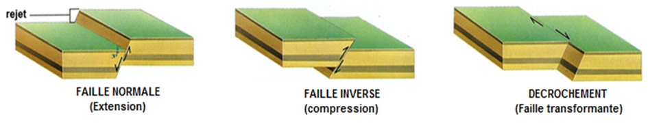 Remarque : si une cassure de terrain n’est pas accompagnée d’un déplacement relatif des compartiments, on parle de diaclase.