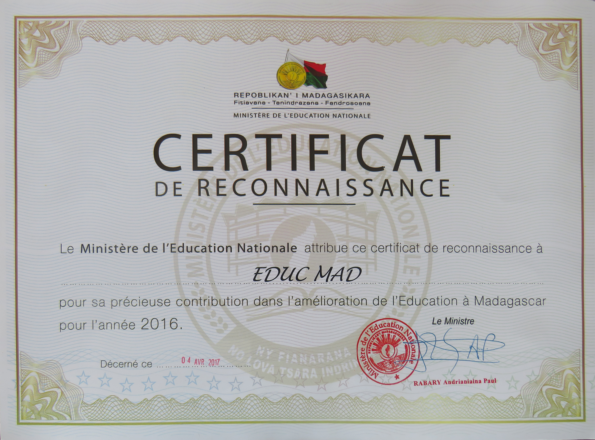 du Ministère de l'Education Nationale