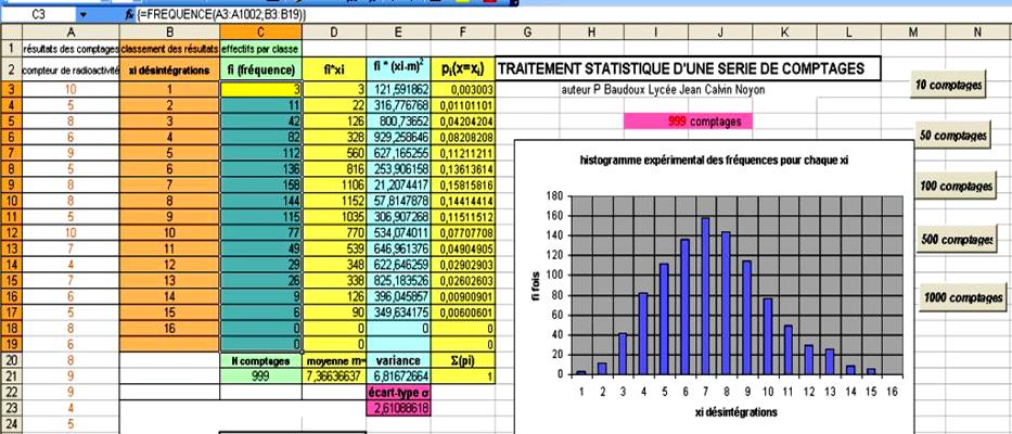 Traitement statistique d'une série de comptages