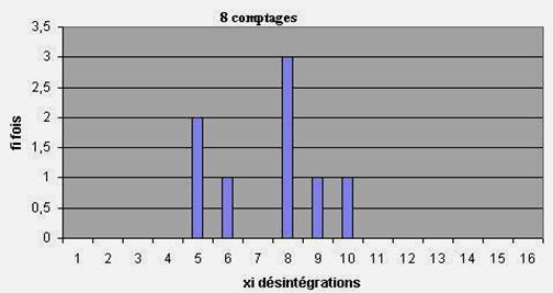 la classe 8 indique que l’événement xi =8 (8 désintégrations
