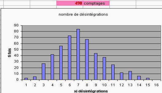 chaque cellule indique le nombre xi de désintégrations détectées pendant une