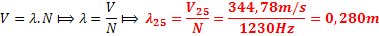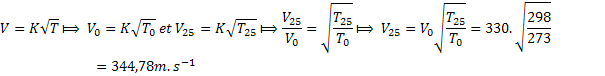 Calcul de la longueur d’onde du son émis à 25°C :