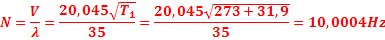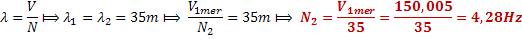 2°/ Calcul de la fréquence de l’onde F1 dont t1=31,9°C et 𝜆=35m