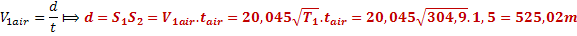 3°/ Dans l’air, un son émis de S1 arrive en S2  tair =1,5s après l’émission