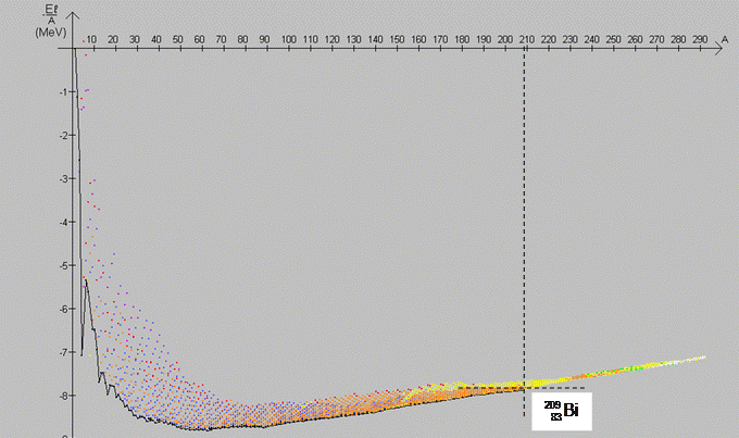 b-      D'après la position du Bismuth 209 dans la courbe d'Aston (voir annexe), quelle transformation fusion ou fission pourrait-on envisager dans un processus classique tendant à gagner en stabilité? Quel nom peut-on donner à la transformation effectuée ici pour passer du Bismuth 209 au Bismuth 210 ?