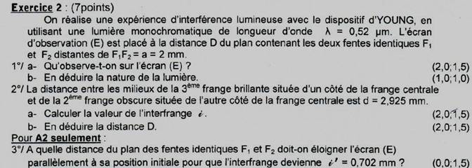 Exercices Bac : interférences lumineuses et effet photoélectrique