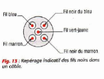 Dans les câbles comportant deux fils noirs, ces fils sont repérés par leur proximité avec les fils marron et bleus (fig. 13)
