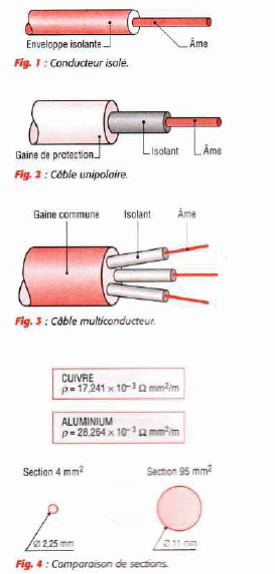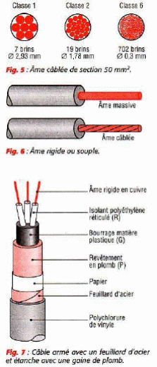 La valeur de l'intensité qui circule dans l'âme est fonction de la surface de la section. Les sections normalisées vont de 0,5 mm2 à 630 mm2 [fig. 4).